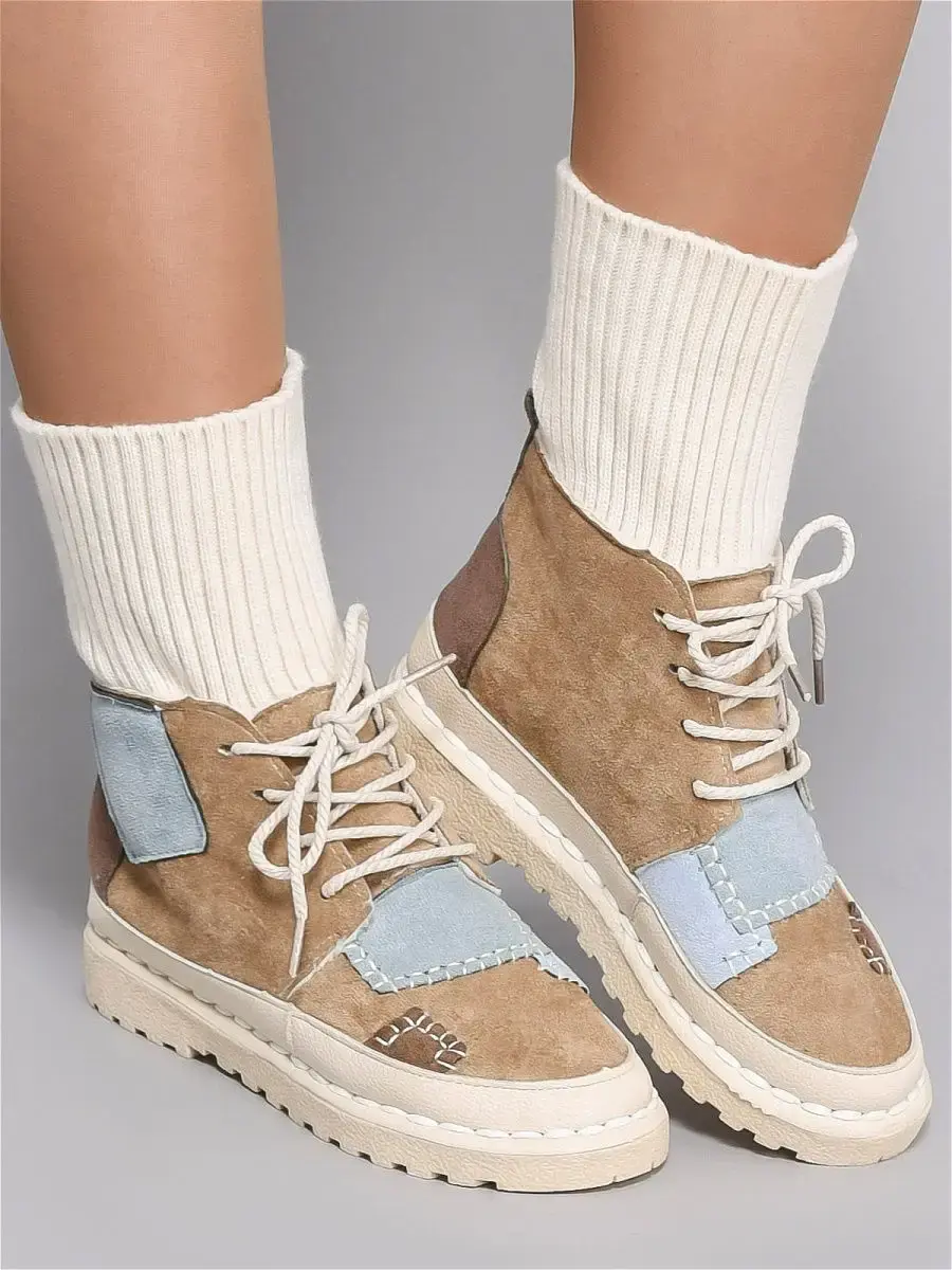 Мягкие и лёгкие женские ботинки для тёплой осени и ранней весны. Необычный дизайн в стиле пэчворк добавляет необычности и эксклюзивности модели! Подошва с рельефным протектором из литого каучука зашитит Ваши ноги и не даст скользить. Выполнены из эко-замши. На узкую ногу!