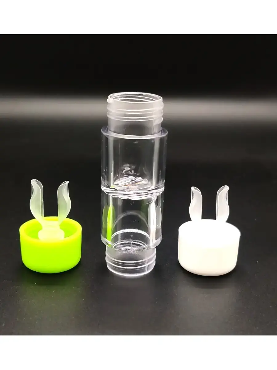 Двойной пластиковый контейнер для жестких контактных линз состоит из двух независимых ячеек с резьбовым соединением, имеет силиконовые держатели, функция которых, фиксировать линзы и хранить их по отдельности друг от друга.объем 2.4 млДля удобства использования, крышечки контейнеров имеют разный цвет и дополнительное обозначение в виде буквы